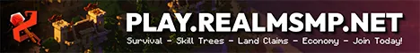 RealmSMP is a Minecraft Server that combines Survival Minecraft with an exceptionally in-depth custom skill tree system, a powerful town-claim system, and a dynamic economy that shapes with the player